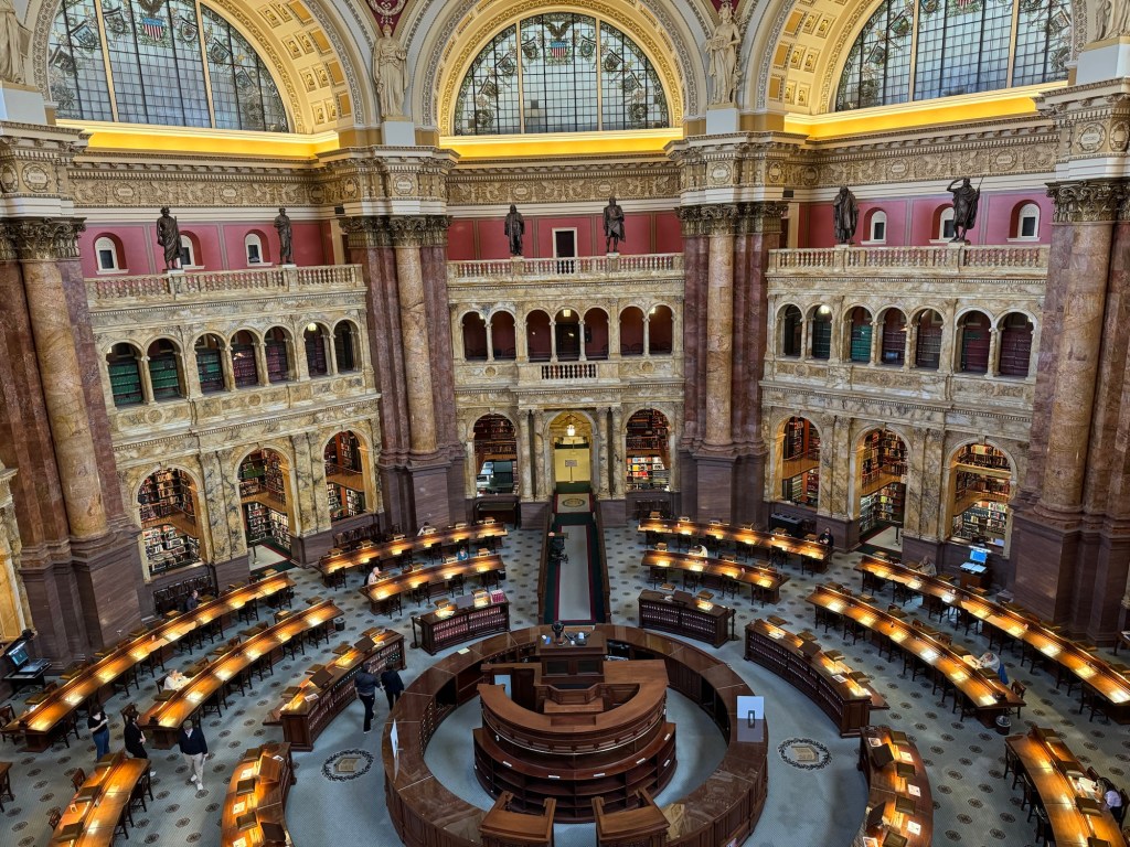 The next day we were able to participate in a capitol tour by emailing our congressman, Mike Garcia. Emma; one of his staffers was amazing and even came out to find us in the rain when we didn’t know where to go. If you contact them 90 days in advance, they can also assist in getting you into the White House for a tour, both links are provided above when I mention planning your trip 3-4 months out. This trip we had to get pictures from the gates of the White House. When you’re in this area you can also visit the Library of Congress (you also need times tickets for this https://www.etix.com/ticket/e/1038417/timedentry-ticket-reservations-washington-thomas-jefferson-building)…we got them for the latest time on Thursday because they have a happy hour in the library that starts at 5pm and in our case, they had an Elton John dance party as well. We also walked over to the Supreme Court, and visited Fords Theatre https://fords.org/calendar/ where Lincoln was shot and the Peterson House across the street where he ultimately passed away the following morning. Later in the day we walked around the tidal basin to view what was left of the cherry blossoms and walked up into the Jefferson Memorial. The Roosevelt and the MLK Jr. memorial are also close by here as well.