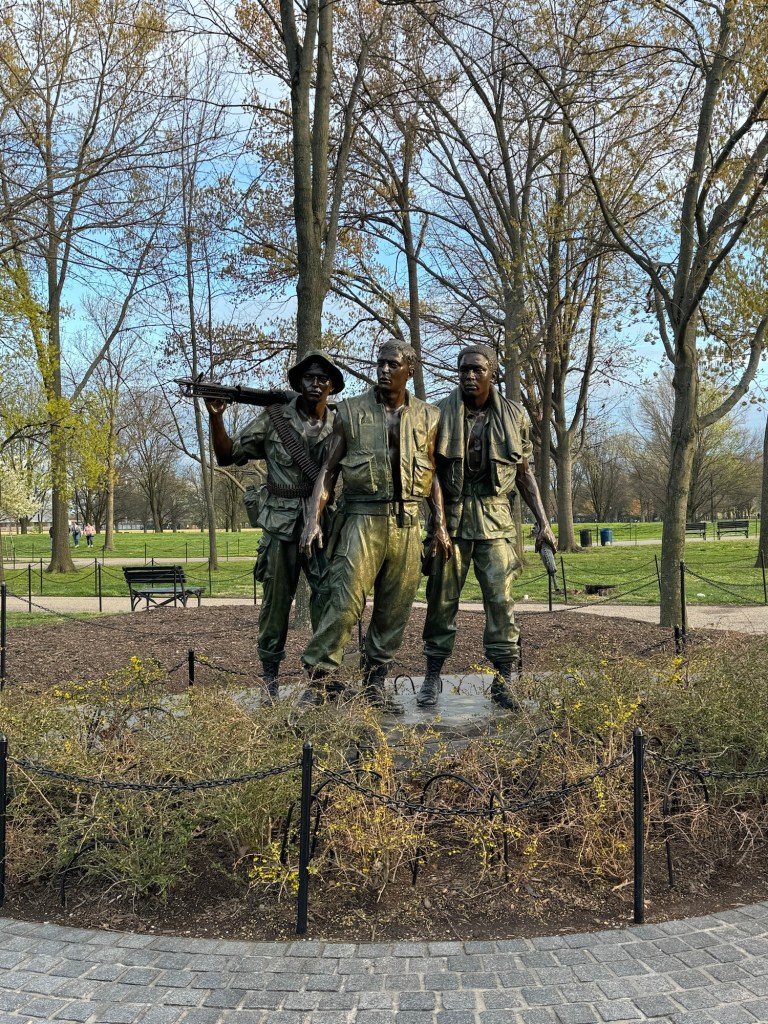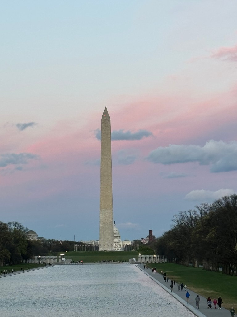 This hotel was right next to Camden Yards https://www.mlb.com/orioles/ballpark, where we would be catching a baseball game the next day. That evening we rented an electric boat (just walk along the harbor and there are multiple rental stands with boats available) next to the aquarium https://aqua.org/ and walked around inner harbor. Baltimore has a lot of restaurants and food options, but we ultimately ate at a restaurant in our hotel, The Yard https://www.theyardbarandgrillbaltimore.com/ and it was really good! We visited chick fil a first, for the kids and ours was comparable in price as well. My husband had chicken tenders and it came with more than he could finish and I had a turkey wrap. There was also a pizza place that smelled amazing BricknFire Pizza Co. https://www.bricknfirepizzacompany.com/ , however the line was pretty long and we were hungry. The next day we walked over to Starbucks to get our Baltimore mug and Dunkin’ Donuts was also right next to the hotel. This afternoon we would be going to Camden Yards for our 15th {the halfway mark} MLB stadium as a family. Before the game we followed the Babe Ruth baseballs on the sidewalk to his birthplace https://baberuthmuseum.org/babe-ruth-birthplace-museum/ and watched the fans pre-game at the bars and restaurants surrounding the stadium. The game started at 1:35, so we made sure to be in line around noon to get in and went straight to Boogs BBQ in the stadium. It is best to go first thing because the line gets pretty long. You can easily share a sandwich with 2, even 3 people. We watched the Angels warm up and were able to get some autographs from the players. It was a Sunday game, so the kids were allowed to run the bases after the game. It was such a fun experience. The parents even get to walk out onto the field. After the game, we drove by the Francis Scott Key bridge to see first hand the devastation caused by the large cargo ship hitting the pillars of the bridge. It was all still there and many others joined us in walking up to the edge of the shore, close to the site of the crash. That night we headed to the Residence Inn Marriott https://www.marriott.com/en-us/hotels/wasxr-residence-inn-washington-capitol-hill-navy-yard/overview/ right next to the Washington Nationals Field https://www.mlb.com/nationals/ballpark. It was opening day and our hotel was in the perfect location for the game. The restaurants surrounding the area were filled with fans and the weather even held out with the sun shining for a few minutes at the game. The Washington Nationals was an amazing 16th stadium to visit. After the game, we went to Pink Taco http://www.pinktaco.com Their chips and salsa was amazing and they even had my favorite wine, Meiomi. I had the chicken tortilla soup and loved it! It was the perfect way to warm up after the game. After dinner we checked into our next hotel where we would stay for the week in the Foggy Bottom neighborhood of Washington DC. It was the Residence Inn and was a two bedroom suite with a kitchen and fit our family of 5 perfectly ( https://www.marriott.com/en-us/hotels/wasfg-residence-inn-washington-dc-foggy-bottom/overview/ ). We also had breakfast there each morning and would take up granola, yogurt and peanut butter and jelly sandwiches from breakfast to snack on in our room after we returned for the night. The hotel was next to the Watergate Hotel {my husband and I of course had to have drinks there one night, just to say we had been there} and the Kennedy Center for Performing Arts, which had an incredible exhibit about the Kennedy family. It was a 10 minute walk to M Street in Georgetown, a 5 minute walk to George Washington University and the metro, which was our preferred method of transportation. Once we arrived to this hotel, we returned our rental car to the Ronald Reagan Airport and easily rode the metro right back to our hotel. The metro is $2/person, so unless an Uber was cheaper than $10, we took the train and were able to teach the kids how to figure out the rail system. That was all my husband; I just followed his lead and always ended up where we intended to. Once we were checked in, we went down to try and meet up with our daughter’s class and view the monuments at night. The Korean War monument was my favorite, seeing the soldiers in moonlight with their weapons truly made you appreciate all they went through. The Vietnam and WW2 memorials were close by as well. It was sad to hear how poorly our Vietnam Veterans were treated upon their return from a war many of them had no choice in being a part of, as the draft was displayed on television and you had a certain time to report or you would be arrested. The youngest boy on the WW2 memorial enlisted when he was just 14 years old and was killed at 15. My daughter turned 14 on this trip, so I understood how young that truly was. My grandpa also enlisted when he was under 18 so it made me appreciate his sacrifice at such a young age as well. It is amazing how quickly these soldiers had to grow up. There were also 8 women’s names on the wall who died for their country.