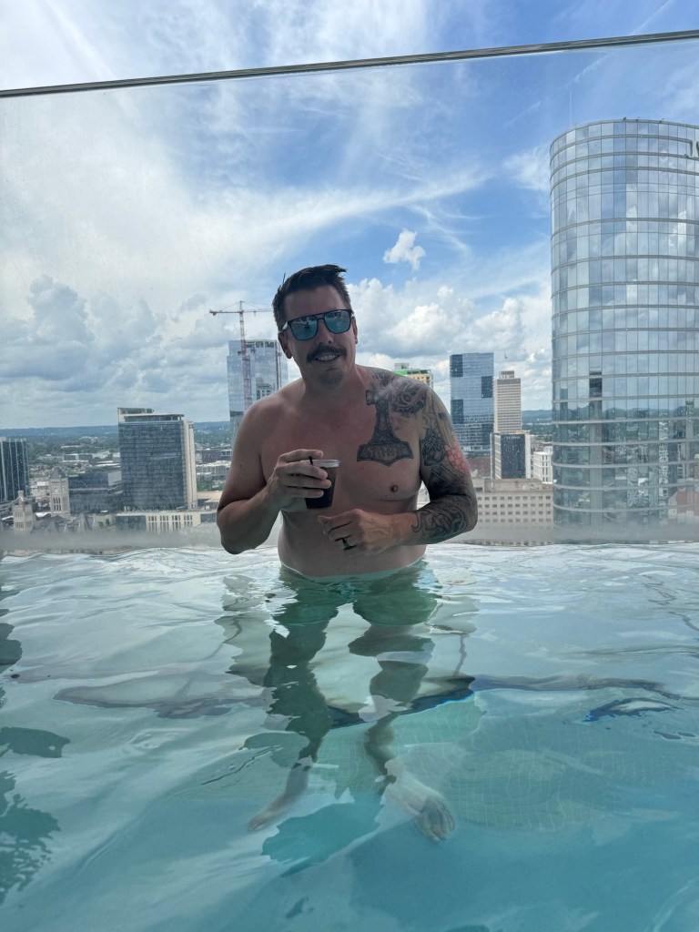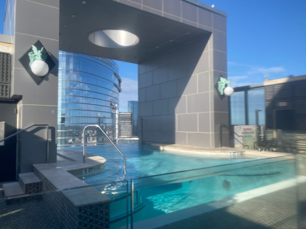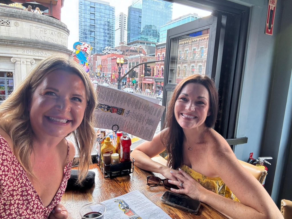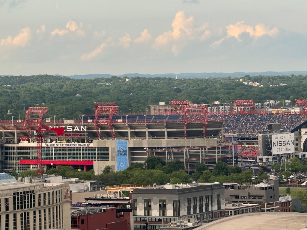 We stayed at the Westin Nashville https://www.marriott.com/en-us/hotels/bnawi-the-westin-nashville/overview/and our friends stayed right next door at the JW Marriott https://www.marriott.com/en-us/hotels/bnajw-jw-marriott-nashville/overview/. Both were amazing, but we had previously stayed at the Westin and knew we loved their rooftop pool. Both hotels are walking distance to the famous Broadway honky tonk bars, the gulch for shopping or brunch and those famous Nashville wings everyone takes a picture with, we could see Nissan Stadium from our room and watched people gather in their seats for Morgan Wallen’s concert.