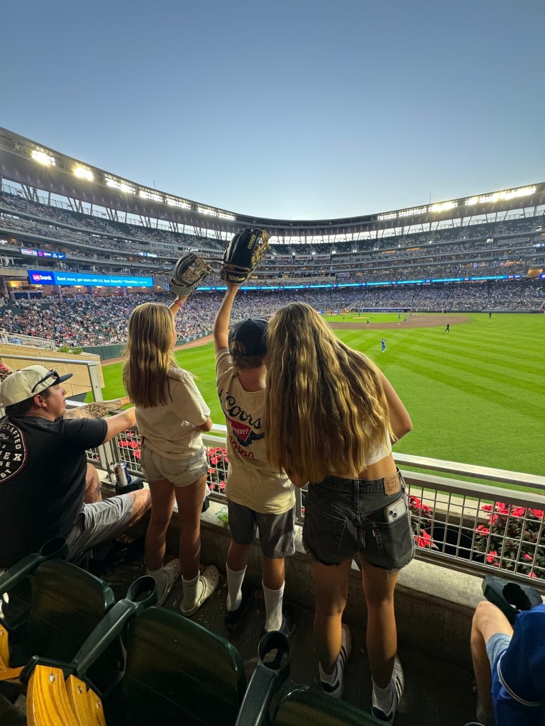We spent the day walking around the Mall of America (MOA), our oldest was just asked to HOCO; so we were on the hunt for some shoes, riding the rollercoasters and the water ride and eating at https://wahlburgers.com/all-locations with their $5 shareables, $5 draft beers and $4 glasses of wine. As we finished up dinner and shopping, we grabbed the kids gloves from the room and headed over to Target Field https://www.mlb.com/twins/ballpark to watch the Twins beat the Blue Jays. At the game, we indulged in our favorite dessert soft serve in Twins helmets, the. best. https://www.mlb.com/twins/tickets/single-game-tickets