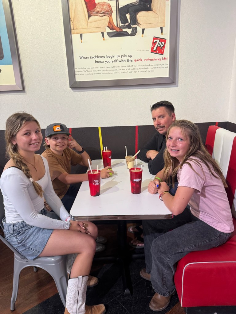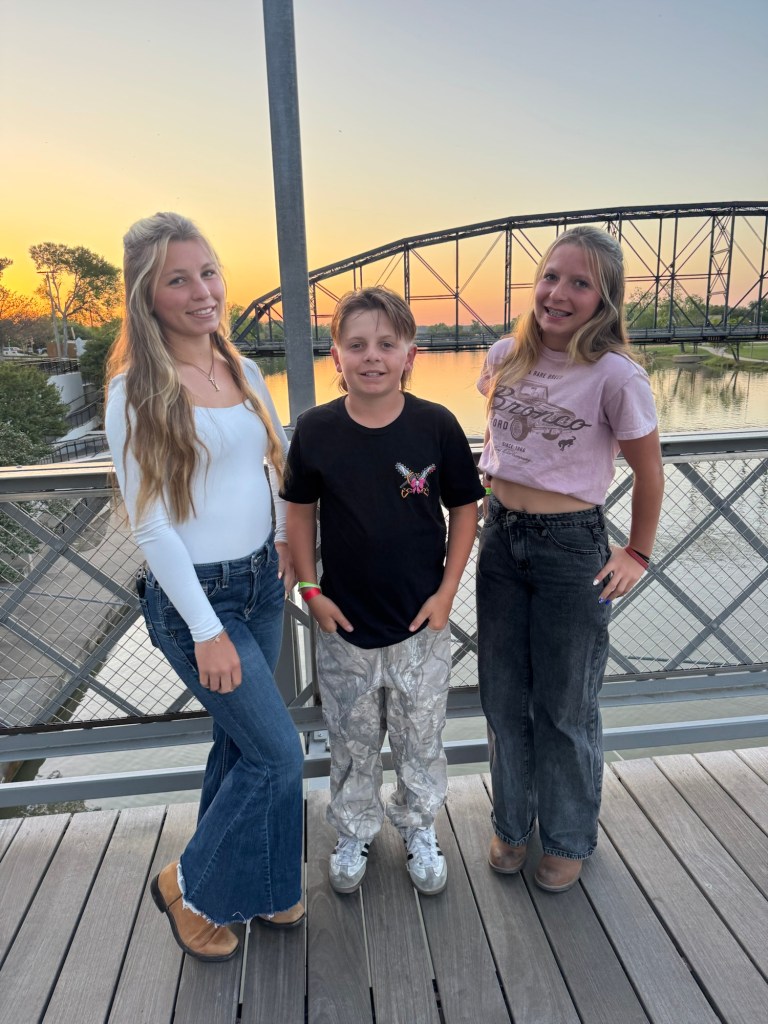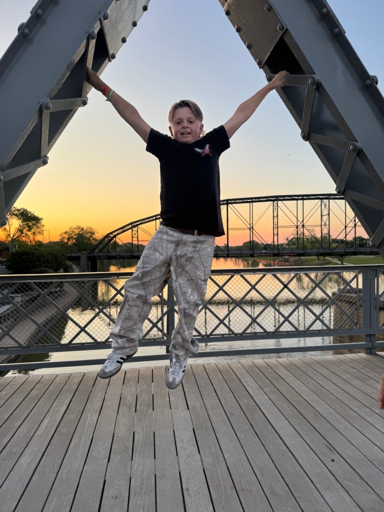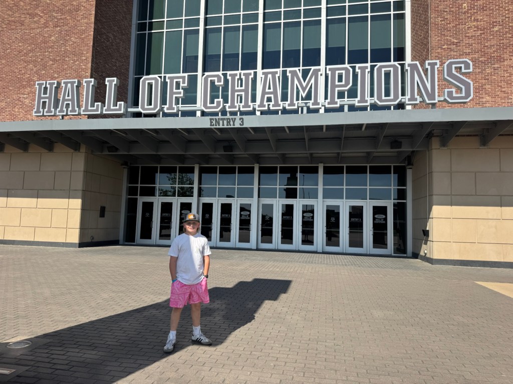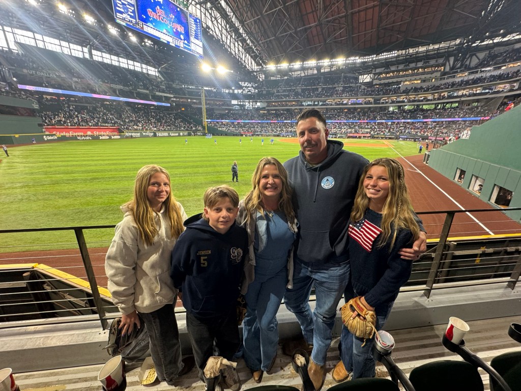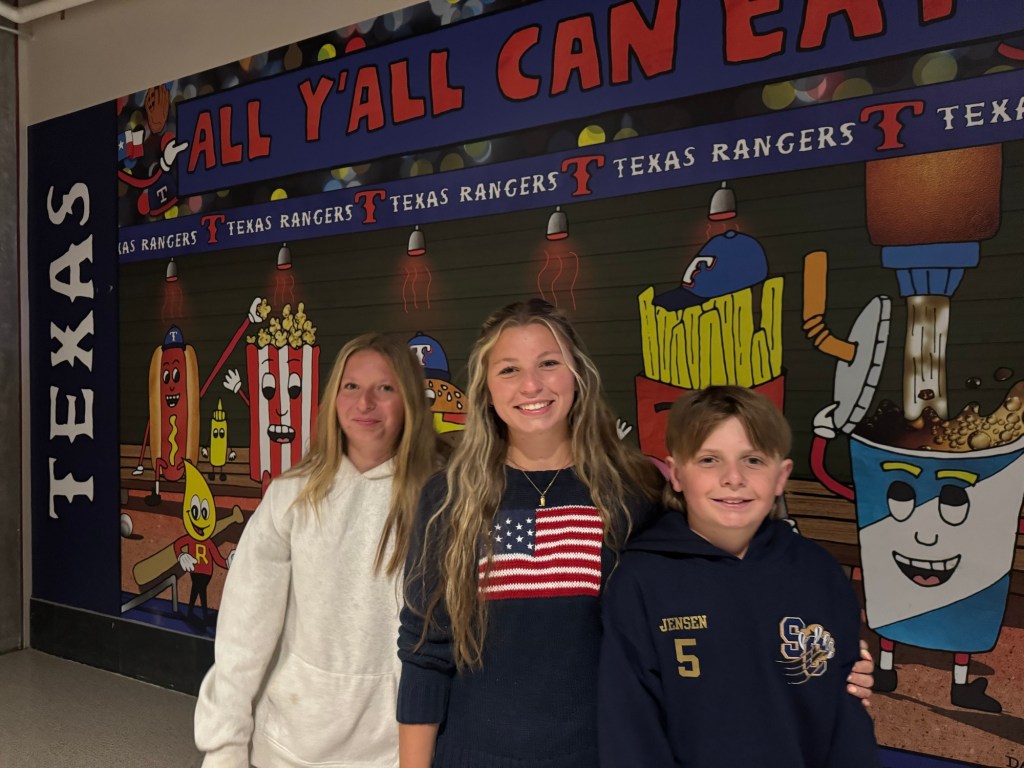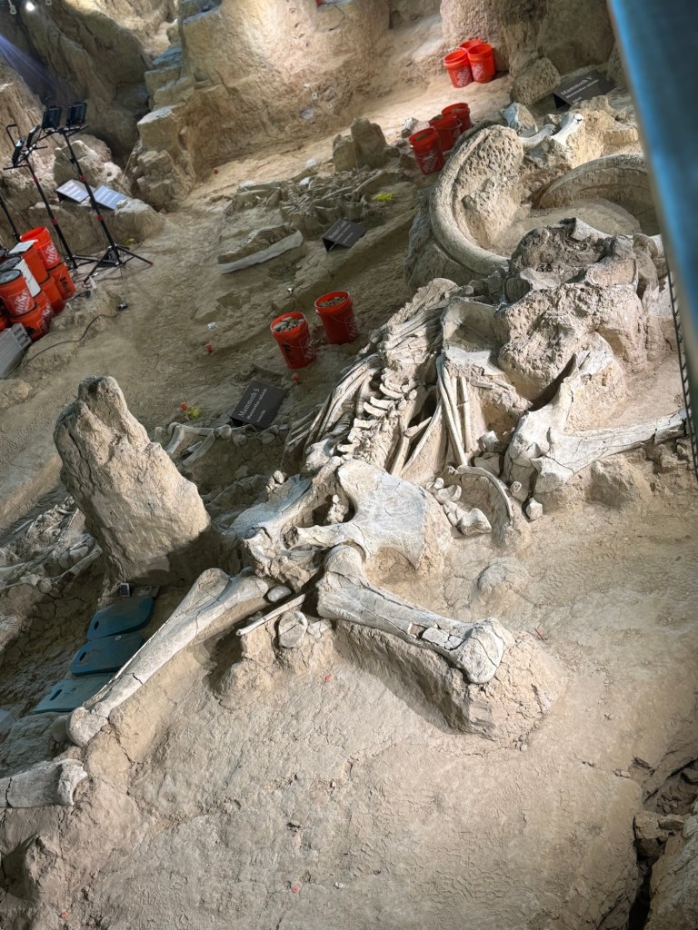 The next day we loaded up the Tahoe and headed to Waco. We stayed at the Residence Inn Waco in a two bedroom, two bathroom unit with a kitchen. They also offered breakfast, if you aren’t going to the Magnolia Silos for that! While in Waco we visited the Dr. Pepper museum and had Dr. Pepper floats, with the famous Blue Bell ice cream you see all over Texas. We actually had this ice cream at both stadiums, too. Of course we had to stop by the Magnolia Silos. While I shopped, the kids and my husband found a baseball diamond and used the wiffle bats and balls available to play. They also played corn hole and enjoyed the beautiful weather in the ample seating all over. That evening we went to the suspension bridge over the Brazos river and took sunset pictures (we have teenage daughters, if you know; you know). We had dinner at Terry Blacks BBQ and got the small family meal that serves six. It was so good, but much more than we could finish. Luckily, our hotel had a refrigerator and we had pork ribs and sausage as part of our breakfast. The next morning we grabbed a Dutch bros and headed to the Mammoth Fossil site. Colombian mammoths (not woolly mammoths) were discovered here by two boys trespassing and looking for arrowheads. When they found a bone, they took it over to Baylor University and realized there may be more and they found a group of mama and baby mammoths that may have been killed by a flood. It was one of the largest nursery burial grounds and was a short 30 minute guided tour and interesting. I feel like this museum was definitely much more worth the cost, than the Dr. Pepper museum, although it was a fun experience.