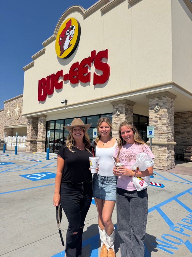 After the tour we loaded in the Tahoe and headed to College Station, but not before stopping at Buc-ees for some lunch. If you have not had their gas station pulled pork, you sure are missing out! We got some beaver nuggets, candied pecans, cherry sours and peach rings, along with our DIY swig style drinks (because that was too far off the highway) and kept on trucking! My husband even bought me a Justin cowboy hat at Buc-ees. It doesn’t get much more Texas than that!