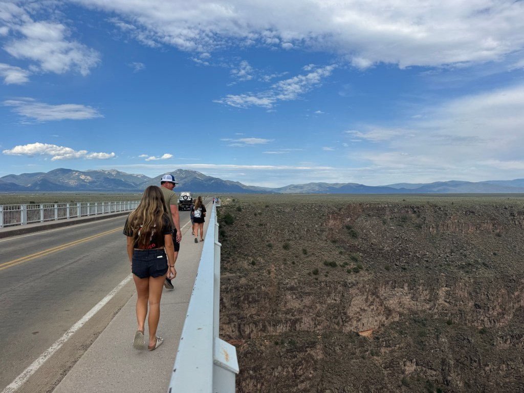 Then we rented a sand board and visited the Great Sand Dunes National Park and braved 140-150 degrees sand. I should say, my family did…I stayed in the shade. After our extremely warm adventure, we continued on to Taos New Mexico. We stopped at the Rio Grande Gorge bridge, which was an amazing site to see (but if you’re like me and not a fan of heights, know that it will make you dizzy looking down). That night we stayed in one of my favorite hotels of the trip, La Posada hotel in Santa Fe. There is amazing Mexican food and a relaxing ambiance at the resort.