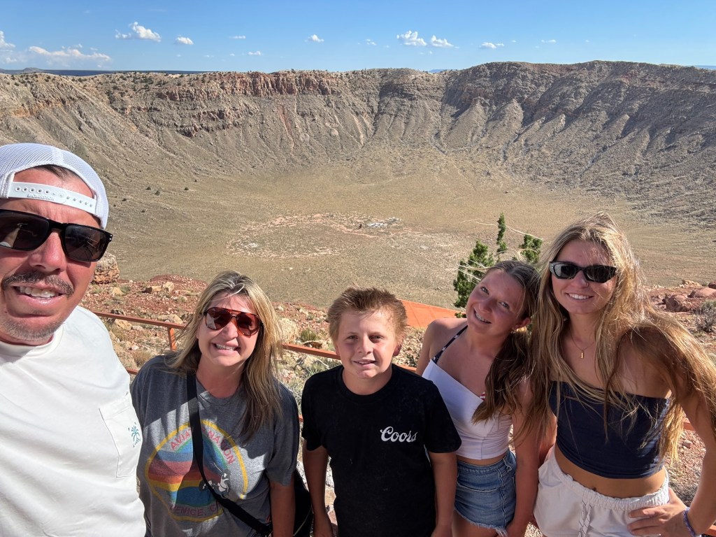 The next morning we drove through the Petrified forest, the painted desert, along Route 66 and to the Meteor Crator, before our last stop in Sedona. As one of the murals stated it best, God created the Grand Canyon, but he lived in Sedona. The sunrise and sunset from our gorgeous balcony at Skyrock Sedona was one of the best views of the trip. After a wonderful breakfast of avocado toast at the hotel, we headed to our last adventure at Slide Rock state park. Our kids all three voted that this was their favorite park of the trip. You slide down natural water slides and cool off in the refreshing water.
